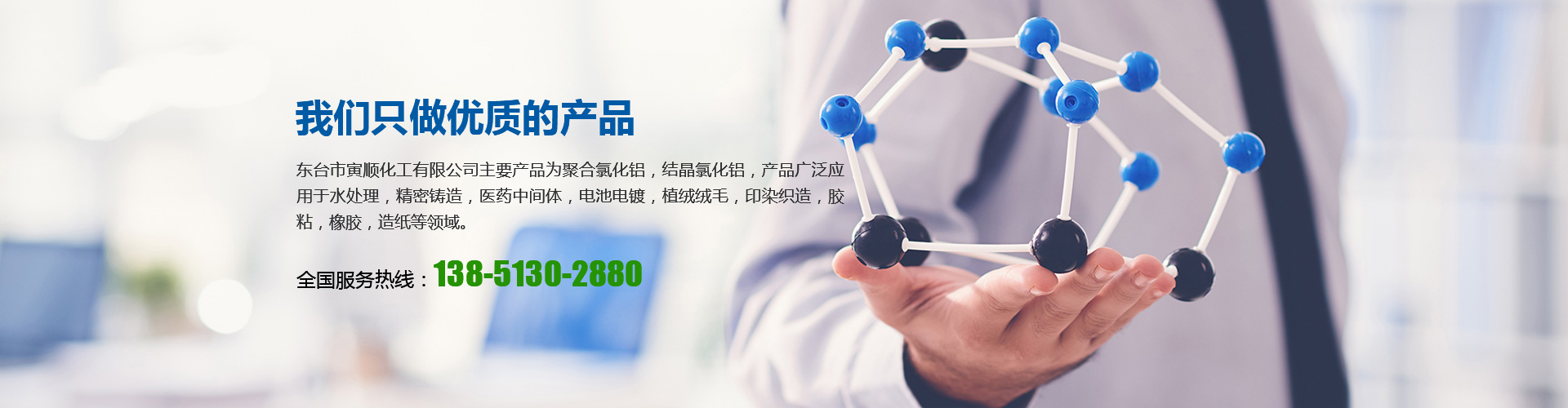 東臺市寅順化工有限公司主要產(chǎn)品為聚合氯化鋁,結(jié)晶氯化鋁,產(chǎn)品廣泛應(yīng)用于水處理,精密鑄造,醫(yī)藥中間體,電池電鍍,植絨絨毛,印染織造,膠粘,橡膠,造紙等領(lǐng)域。